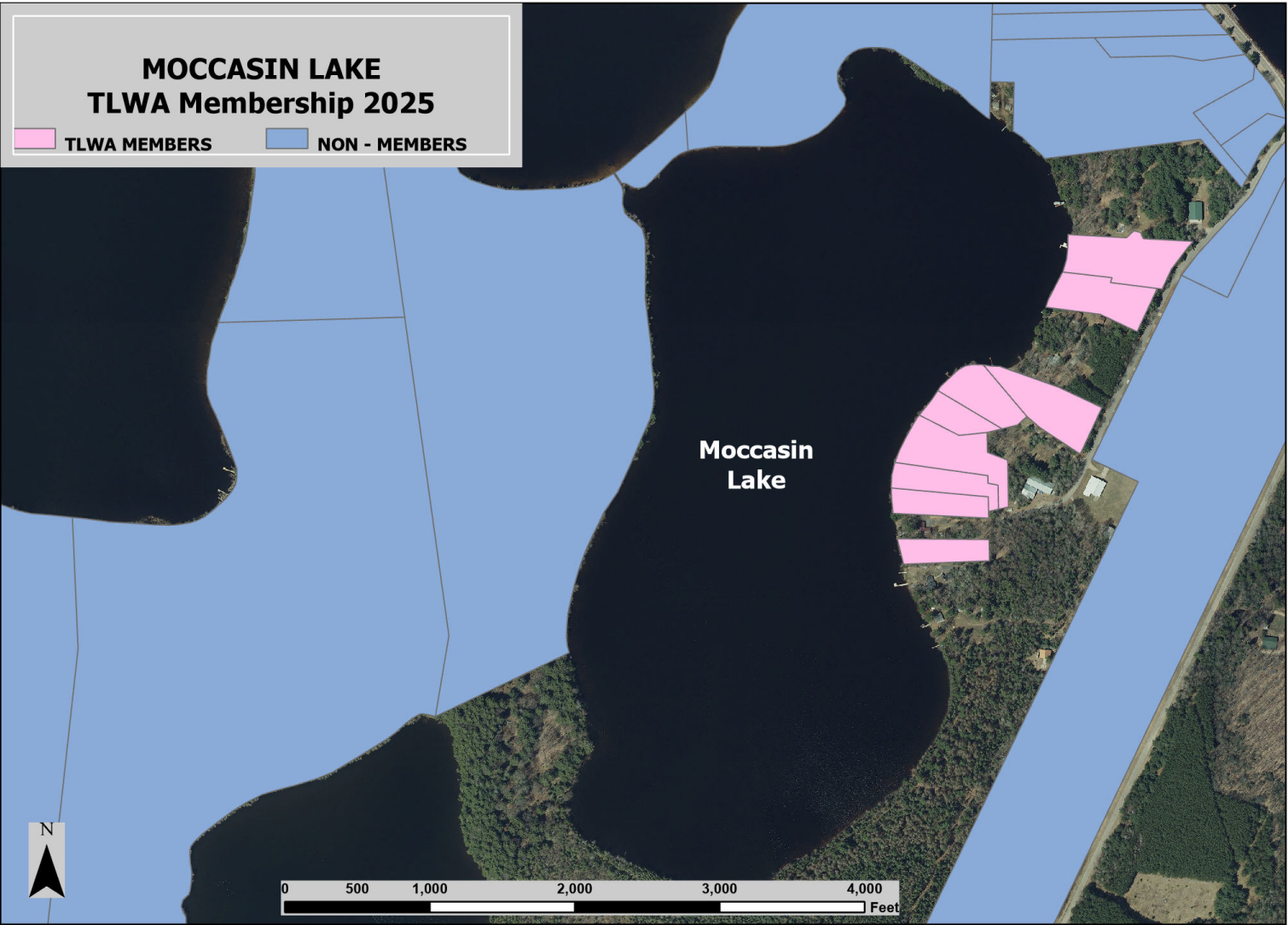 Waterfront land parcels from the Oneida County Land Records are color coded to represent TLWA Membership status as of May 2023. These maps were generated as a visual guide to TLWA participation within the Three Lakes Chain. They became a tool for the Membership committee, Lake Captains, shoreline monitors, and neighbors to assist in identifying under-represented areas where new members could be sought out and encouraged to join.